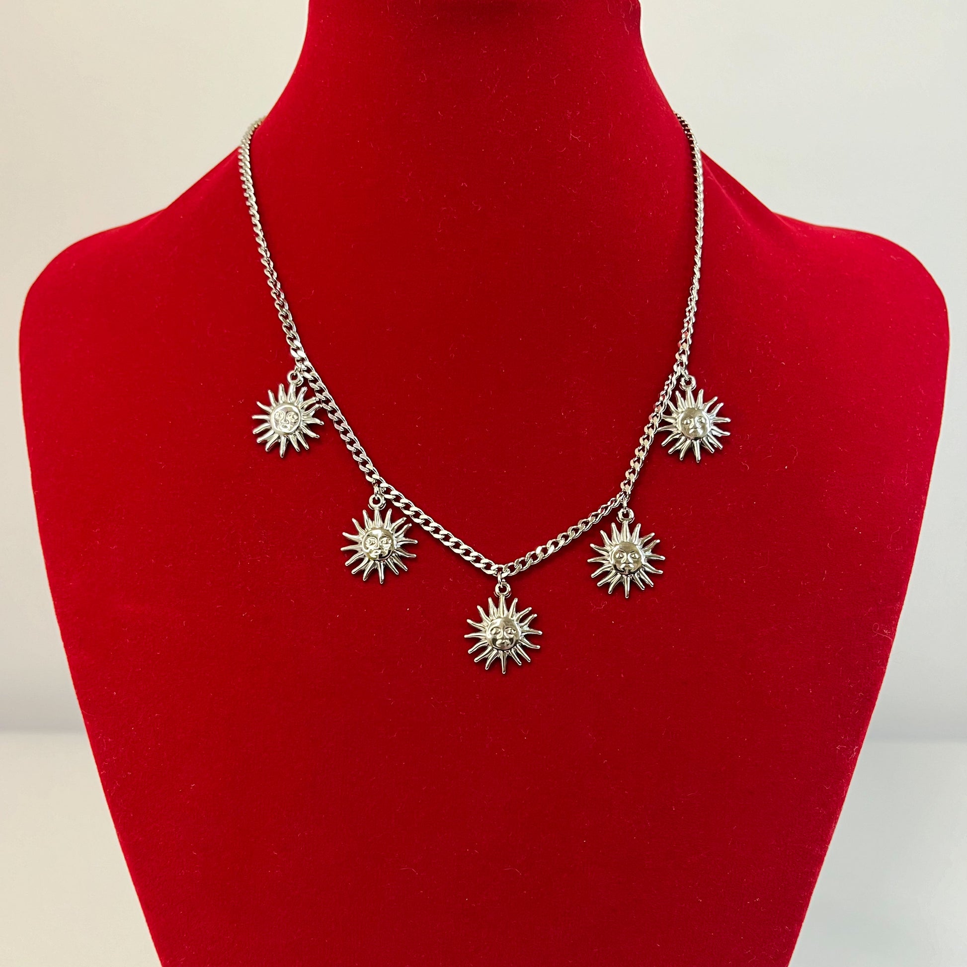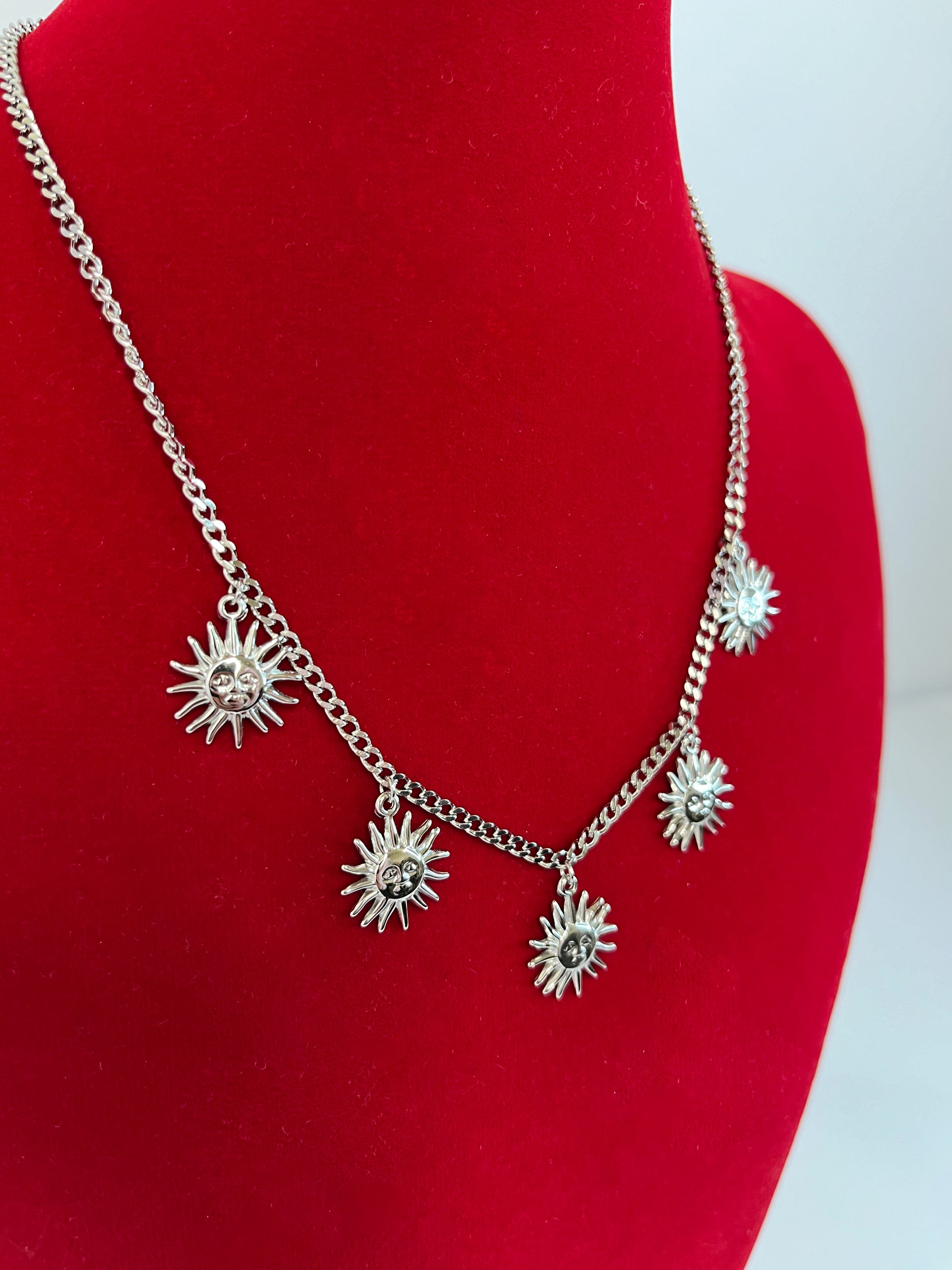 Collana Re Sole interamente in acciaio inossidabile con 5 graziosi Charm sole.